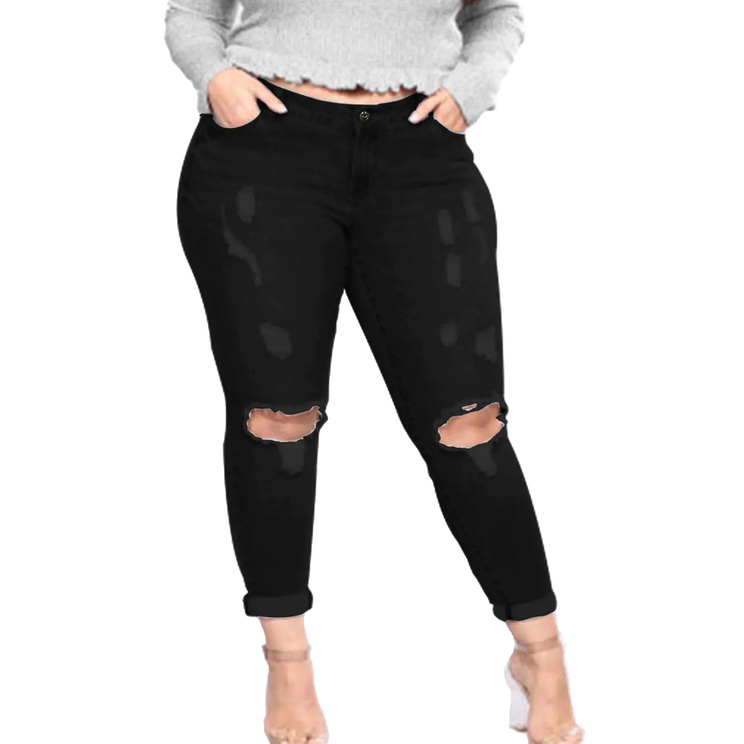 Tulucky Womens Plus Size Boyfriend Jeans Distressed Ripped Denim Pants Comfy Stretch Skinny Jeans(Black14W)
